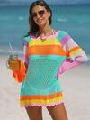 Swim SXY 女士夏季海滩装:白色镂空长袖圆领度假紧身海滩裙、罩衫