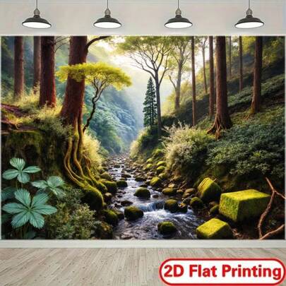 宁静的森林景色背景,适用于婚礼、摄影、装饰和其他场合。清新的绿植,柔和的灯光,营造出自然而温馨的氛围。
