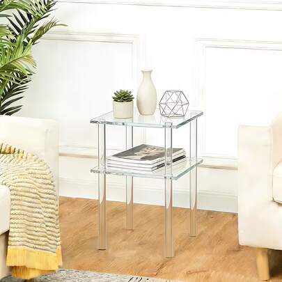 透明亚克力桌面收纳架,带2个储物架,简约透明双层床头柜,适用于小空间、卧室、办公室、客厅