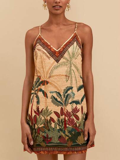 Travachic 2026新款夏季度假椰树印花连衣裙