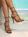 迷人的女式紅色鑽石尖頭綁帶高跟涼鞋,鑽石裝飾的方型綁帶高跟涼鞋