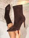 冬季尖头金属装饰时尚靴,黑色百搭时尚弹力优雅短靴,高跟鞋