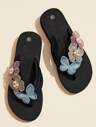 女士時尚塑膠拖鞋帶花卉圖案裝飾用品