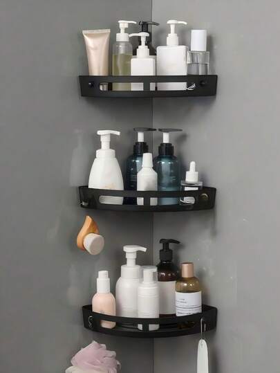 三角形转角浴室置物架,室内淋浴架,浴室壁挂式洗发水架,厨房浴室收纳盒,淋浴篮,节省空间转角置物架 - 耐用壁挂式浴室洗发水、沐浴露和化妆品收纳架 - 安装简便,防滑设计,浴室配件