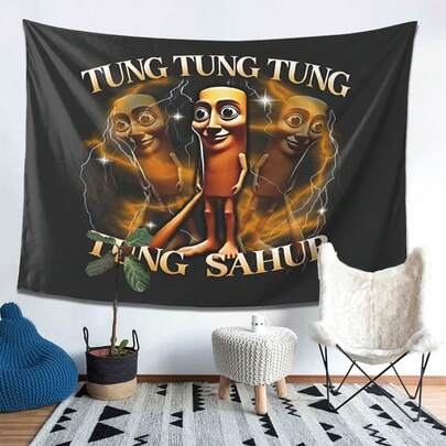 Tung Tung Tung Sahur Idea Inspiration Tapestry Vintage Movie Poster Style, American Vintage Wall Hanging, Nostalgic Intricate Design, Perfect For Wall Decoration, Essential For Family Party Decor