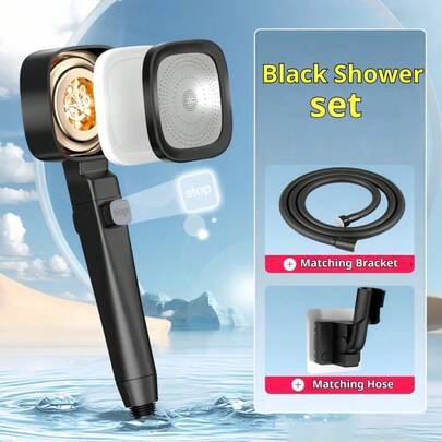 涡轮高压淋浴喷头,4 种模式(雨淋/脉冲/混合/喷射),增加水压,空气系统带来柔和水流,99% 以上防锈过滤器,10 层电镀,3 种颜色可选。 - 黑色套裝 - 查看 1