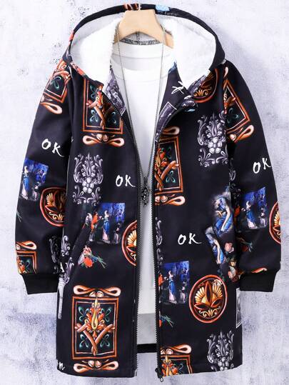 男大童1入組字母圖案風衣外套 - 黑色 - 查看 1
