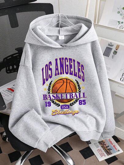 青少年男孩篮球印花保暖连帽卫衣 - 灰色 - 查看 1