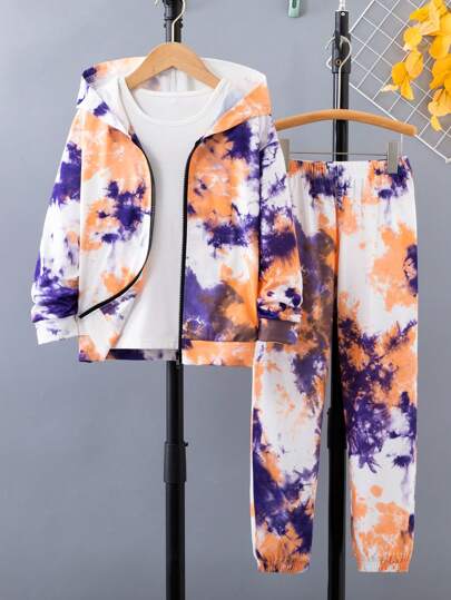 男大童紮染拉鏈連帽衫和運動褲不帶T恤 - 彩色 - 查看 1