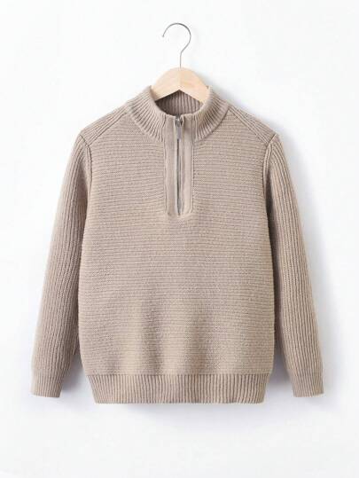 男大童前拉鍊小高領套頭毛衣 - 杏色 - 查看 1