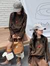 1 件女童休闲印花圆领长袖 T 恤,秋季学生年轻服装