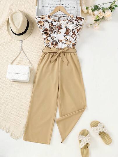 少女圆领短袖休闲优雅两件套 - 彩色 - 查看 1
