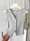SHEIN 浅灰色短款女童针织背心,V领,罗纹针织上衣,少女毛衣上衣,少女上衣,灰色上衣