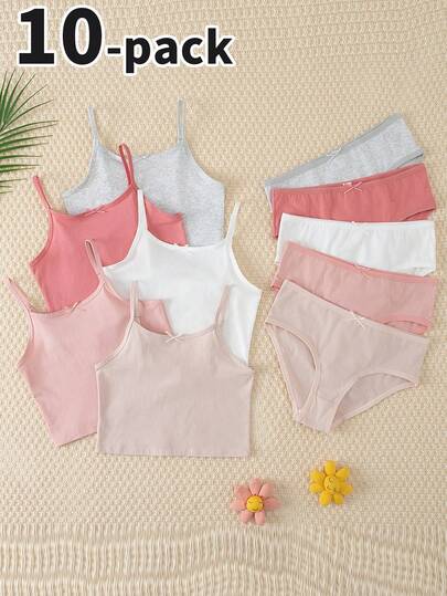 10件套少女纯色吊带背心和内裤套装 - 彩色 - 查看 1