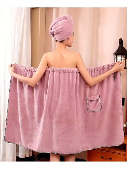 Two-Piece Set Of Women's Bathrobe And Shower Cap – Soft, Absorbent, And Lint-Free Bath Towel Set – Skin-Friendly, Breathable, Colorfast, Fluffy, And Comfortable – Ideal For Showering, Relaxing At Home, And Traveling | Soft, Absorbent Bath Towel | Non-Slip Shower Cap | Women's Bathrobe Set | Bathrobe For Relaxing At Home | Practical Travel Bath Towel Set - 淺粉色 - 查看 1