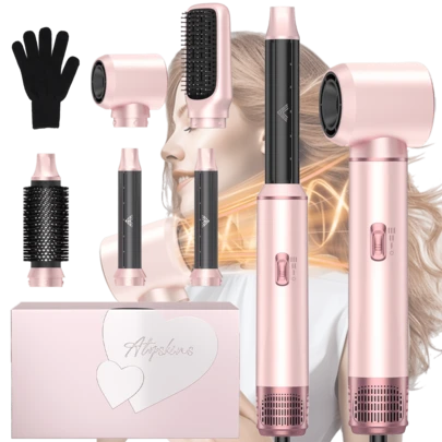 UKLISS 五合一热风造型器及吹风机 | 5个可拆卸互换配件 + 3档精准温度设置 | 自动卷发及多种造型(卷发/波浪/直发/蓬松) | 防毛躁、防静电、持久定型 | 适用于所有发质(细软/粗硬/卷发/直发) | 送给她的绝佳礼物(情人节、主显节、狂欢节) | 适用于沙龙/居家使用、旅行、办公、度假、派对、狂欢节等场合 - 珊瑚粉 - 查看 5