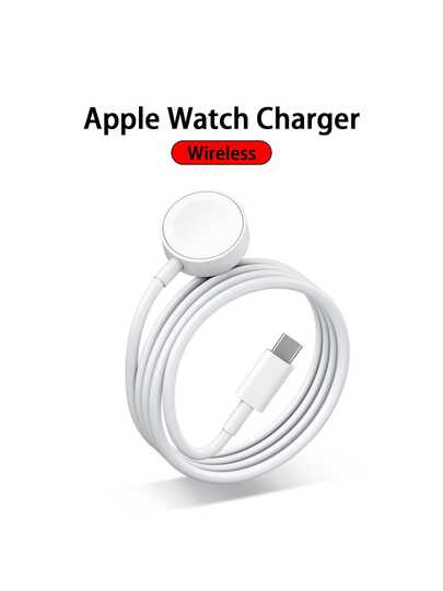 USB-C 磁性无线充电线,快速充电,便携式充电线,兼容 Series Ultra/10/9/8/7/6/SE/SE2/5/4/3/2 - 白色 - 查看 1
