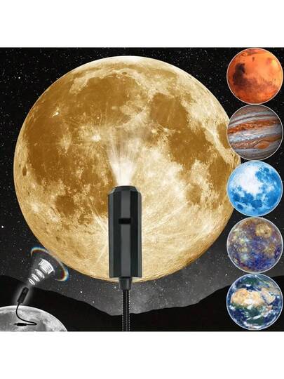 USB供电LED星夜投影灯,3/6/10颗可更换行星投影仪,360°旋转,便携,带天花板照片背景装饰,适用于卧室、客厅、小夜灯 - USB - 查看 1