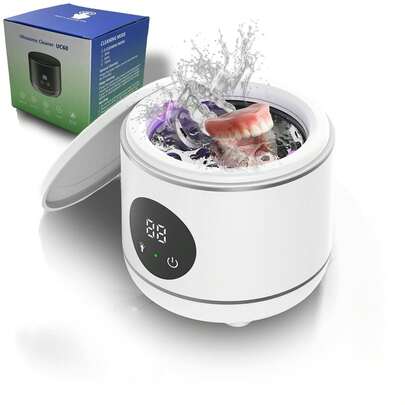 家用超声波清洗机,适用于珠宝和假牙,带紫外线灯、遥控器和消毒功能 - 白色 - 查看 1