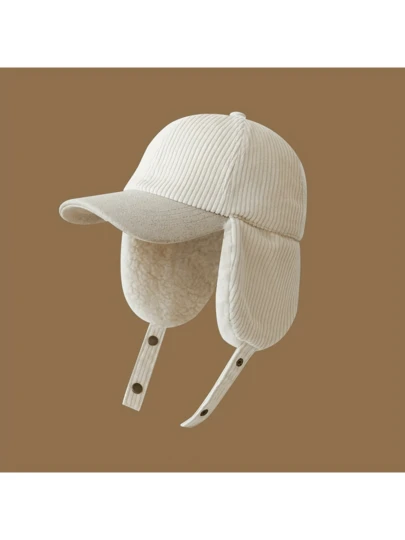 男女通用冬季保暖毛绒棒球帽,可拆卸耳罩和可调节绑带 - 防风保暖帽,适合滑雪和单板滑雪,可折叠户外帽(护耳) - 彩色 - 查看 1