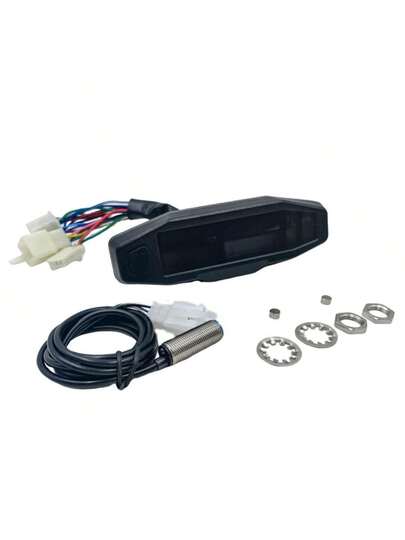 通用液晶数字摩托车速度表里程表转速表燃油表转向灯指示器,适用于摩托车配件 - 黑色 - 查看 1