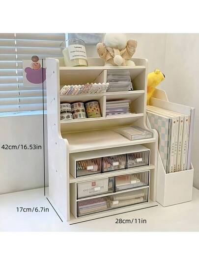 Upgraded Thickened Double Heightened Desktop Organizer, Dormitory Office Storage Box, Cosmetic Books Stationery Organizer, Space Saving Modern Design Durable
