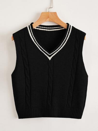 休閒條紋針織上衣 - 黑色 - 查看 1