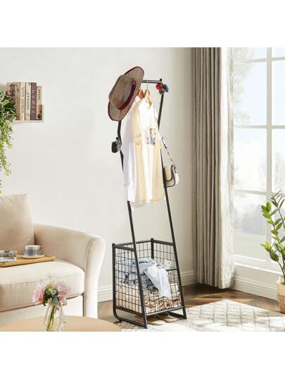 VECELO 独立式衣帽架,带挂杆/储物篮/鞋架/储物箱,适用于入口、走廊、卧室的衣帽架,衣帽架返校旅行必需品房间装饰、家居装饰、卧室装饰存储组织和存储小狗存放连衣裙短裤手机壳比基尼女士夏装裙子夏装连衣裙指甲牛仔裤上衣白色连衣裙女士连衣裙 - With Storage Basket - 查看 1