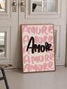 1 件无框粉色“Amore”印刷帆布画 - 现代爱情墙面艺术,卧室、客厅或家庭办公室的美学装饰,手绘风格,室内/室外使用,艺术墙面装饰