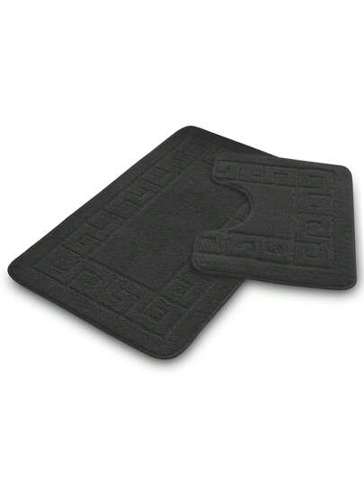 VELVETIO Bath Mat Set 2 Piece Non Slip Rubber Pedestal And Bath Mat Set Toilet Greek Bathroom Rug New - 木炭 - 查看 1