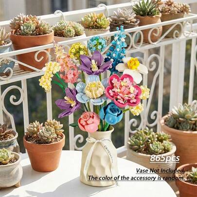 情人节礼物 - 865片永生花积木,DIY浪漫花束,可调节家居装饰 - 成人积木套装 - 彩色 - 查看 1