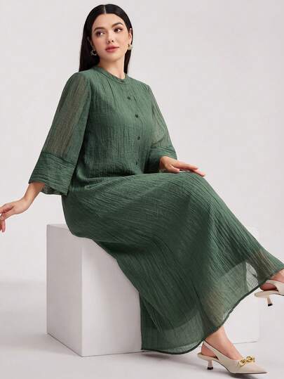 Veilorie 保守休闲女式阿拉伯风格连衣裙 - 綠色 - 查看 1