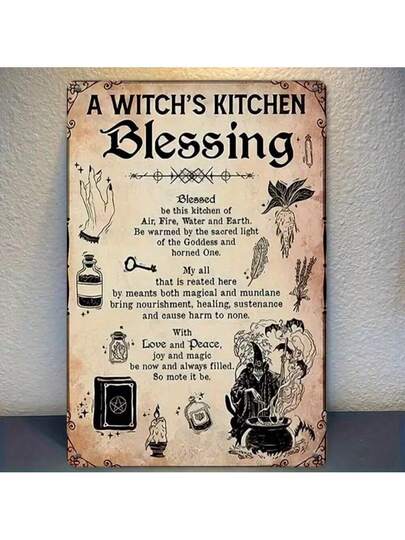 复古“女巫厨房祝福”金属墙饰 - 8x12 英寸铁艺装饰,乡村风格,适合家庭、客厅、花园 - 高品质铁艺,带有巫术符号和咒语 - 理想的节日礼物,巫术家居装饰厨房装饰
