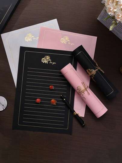 复古金色玫瑰图案信纸,艺术浪漫手写纸,经典纹理,优质A4欧式信纸,情人节表达爱意的完美之选。也适合办公书写。 - 彩色 - 查看 10