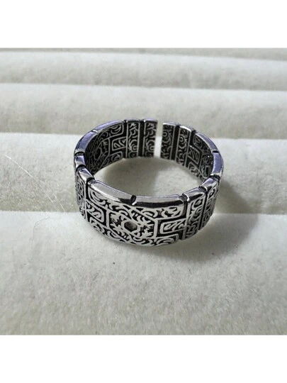 復古泰式銀草圖案戒指,男女通用開口戒指,帶編織帶 - 復古銀色 - 查看 1