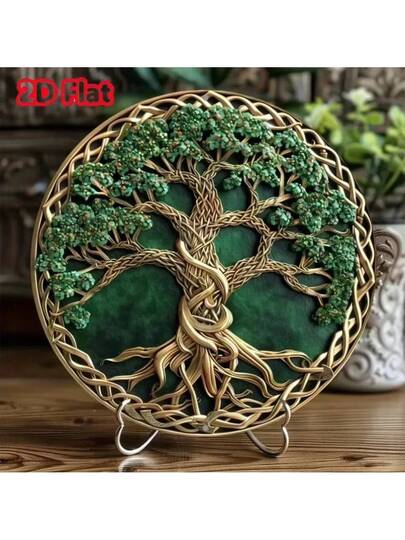 Vintage Tin Painting,Magical Tree Of Life Mandala Art, Vintage Round Wall Decoration, Perfect Home Decoration