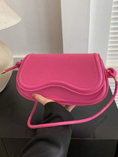 復古女士純色坐墊包,優雅肩袋pu材質,適用於女性日常使用 - 玫紅色 - 查看 1