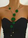 1件时尚优雅几何圆形光滑拉丝不对称蛇形链项链,百搭长项链,女士时尚饰品