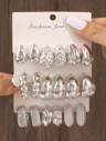 12 件/套创意螺丝环耳环,适合女士,合金配仿珍珠装饰,适合日常佩戴和派对