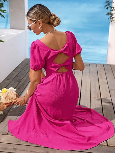 Vivid Eden 女士纯色梭织露背蝴蝶结长连衣裙 - 玫紅色 - 查看 1