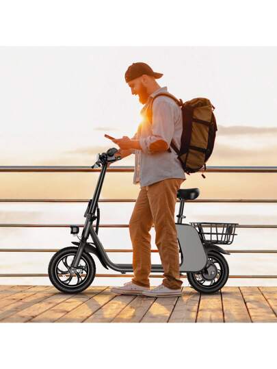 WIND HORSE Electric Scooter With Seat For Adults, 12.5" Electric Scooter Adults 15.5 MPH 20 Miles Range 680W Peak Motor, Dual Disc Brake, Wider Deck, Adjustable Seat, E Scooter With Basket For Commuter Black - 黑色 - 查看 1