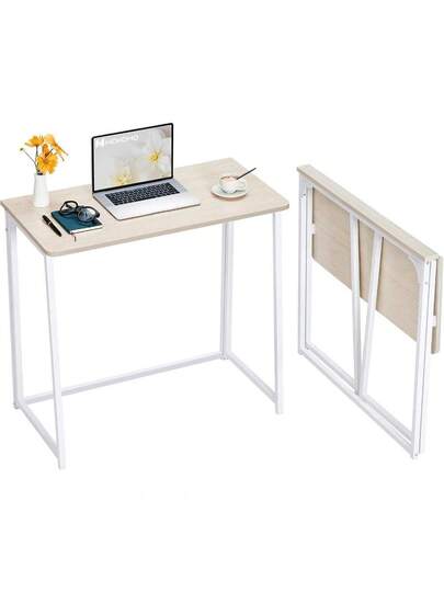 WOHOMO Folding Desk,Small Foldable Desk 80cm For Small Spaces,Space Saving Computer Table Writing Workstation For Home Office,Easy Assembly,Oak - 米色 - 查看 10