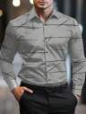 男士斜条纹长袖单排扣休闲正装衬衫,修身剪裁,随机印花,每件均独一无二,雨滴风格,适合派对、户外、街头、商务,百搭之选,最佳礼物