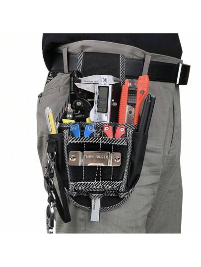 腰包工具腰带袋钻锤收纳钻头螺丝刀实用工具包支架多功能木工工具包 - 黑色 - 查看 5