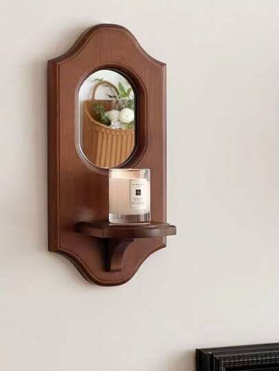 墙面装饰架 - 法式烛台,适用于客厅、卧室、咖啡厅(万圣节、圣诞节、感恩节)、墙壁艺术 | 木制装饰植物架蜡烛展示 | 复古墙镜 | 迷人/乔迁礼物 - 不含蜡烛 - 彩色 - 查看 1