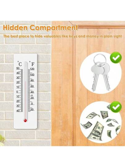 壁挂式温度计多功能室内温度计塑料小巧贵重物品钥匙收纳测量工具,适用于花园和家居 - 彩色 - 查看 5
