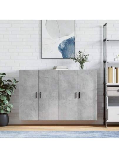 Wall Mounted Storage Cabinets Set Of Two Concrete Grey 69.4x90 Cm Stylish Modern Design For Home Or Office Organization - 灰色 - 查看 10