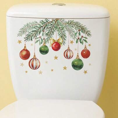 水彩风格装饰贴纸,圣诞主题,饰以彩色彩球和松枝图案,营造节日氛围。采用防水自粘材料制成,易于粘贴,不会损坏釉面,安装简便,轻松打造节日氛围,实用且经济实惠,适用于家庭浴室或出租房装饰。