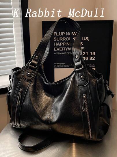 防水商务休闲 PU 手提包 多口袋设计 带隔层 单肩包 多功能斜挎包 适合少女、女大学生、白领和新人,非常适合工作、商务通勤、购物、户外旅行和学校,大容量女士包,引人注目的女士工作包 - 黑色 - 查看 1