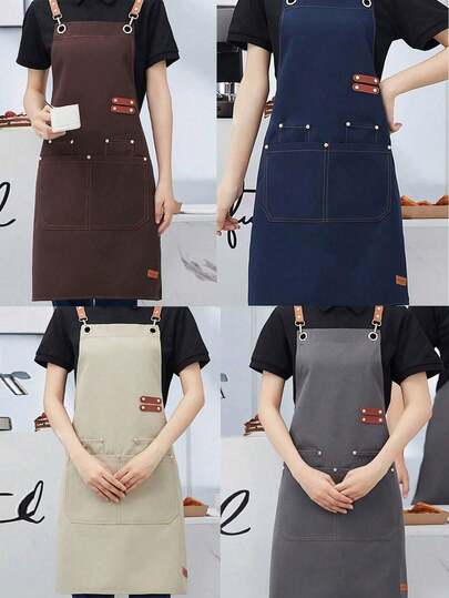 防水帆布围裙,带口袋 - 男女通用涤纶混纺可调节厨师围裙,适用于厨房、餐厅、咖啡馆 | 采用耐用、防污防油的编织面料,配有可调节肩带 - 彩色 - 查看 1